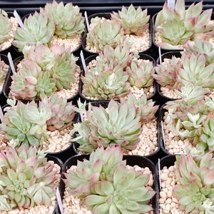 エケベリア ラブリーローズ 1苗しか持って無かったラブリーローズ この前カットしてあげちゃったんだけど 伸びた茎から可愛い子株が3個出た✨ 増やしたいけどすぐには増えないから まとめて仕入れてしまった🤣 徒長苗で少し安く買えたよぉ この状態じゃ売れないので繁殖用苗に決定w 根付いたら秋くらいにカットして 3苗くらい寄せて販売しようかなぁ...と😅