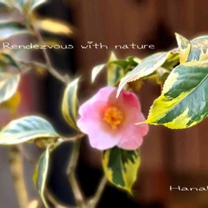 🍀椿 斑入り西王母🍀 ピンクの椿に斑入りの葉が 粋な佇まいでした🌺