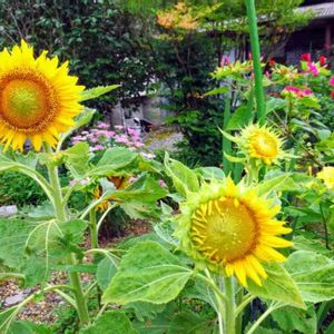 今日のお庭🌼💕 昨日の夕方撮影📷 ミニひまわり🌻3~5輪目順調に咲いてます😀