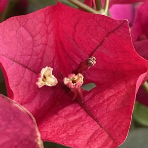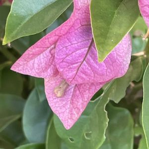 🩷ブーゲンビリア 実際の花は真ん中の白い部分で、鮮やかなピンクの部分は苞葉(ほうよう)と呼ばれる葉っぱです。 ⚫︎オシロイバナ科 ブーゲンビリア属 ⚫︎原産 熱帯アメリカ ⚫︎花期 5月〜10月(10月〜4月)