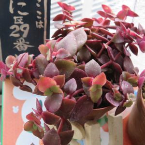 おはようございます😃 強風でした これから雪が降るかも⛄ るるさんのかまぼこ板で繋がる輪🏷️ 参加します 多肉達が赤く染まって綺麗になってきました🎶