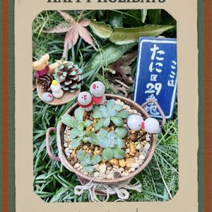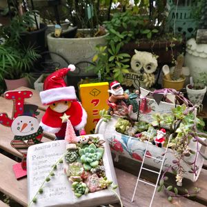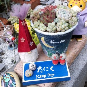 こんばんは😃🌃 🏷️葉挿しの日 🏷️石の日 🏷️クリスマス月間 🏷️クリスマスデコレーション ※るる がくはんどさんの3歳誕生日鉢の寄せ植えお気にいりです☺ 無事冬越ししてネ❄ ※月の雫さんのオジゾータン、石タン 仲良く🎵ニットキャップを被ってコルクチャンも... ガチャガチャハシビロコウチャンも後ろで多肉チャンを見張り番ふふふ。 無事冬越ししてネ❄ 繋がりに感謝です☺