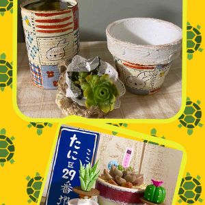 ホワイトラインとジョンヨン🌿 お花🌼早くみたいなぁ~🎶 ↙️福来玉さん♪♪♪脱皮そろそろ~(*≧з≦) ↘️このリメ鉢に先日の苗植えたかったけど…雨☔で外に出られないので延期…😢