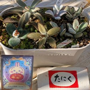 こんにちは(*´ω`*)ノ)) 昨日、同時に- ̗̀📦 ̖́-が届いて 中身を確認、テンション⤴︎⤴︎ました 🏷ごっつご機嫌 付けて紹介させて下さいね〜 1枚目 45ちゃんショップの多肉と鉢等の 販売会、仕事でしたが 運良く昼休み中と休憩時間に お迎えする事が出来ました。 斑入りの多肉、まつぴよちゃんの ソクフクロウ、フクロウリメ鉢、 fukumomoちゃんのディンプルアートのモアイ🗿 45ちゃんのパンダ🐼リメ鉢 どれも可愛いです 斑入りのマクス錦と小枝、飴は 45ちゃんからのプレゼント🎁です 斑入りの多肉がいっぱい届きましたので 🏷斑入り見つけ隊♪ 🏷斑入り見つけ隊No.28 つけさせて頂きます。 2枚目 先日、輪っしょい!プロジェクトで お迎えしたさきゅまるさんの インスタ販売会をたまたまインスタで見つけて、fukumomoちゃんの モアイ🗿鉢とモアイ🗿マグネット とさきゅまるさんにくじ引きを代行して頂いたモンロースター たくみ苗 ラブリーローズビック と夏にお迎えしたのだけど☆に してしまった ラブリーローズドロップ リベンジでお迎えしました。 3枚目 1と2を合わせて📱_(-ω•_パシャ 一気にモアイ🗿グッズが増え 斑入り多肉もいっぱ〜い 🏷の通りの ごっつご機嫌なpicになりました😁