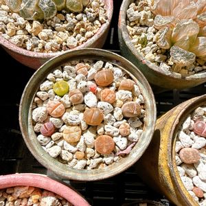我が家の変わり種 ①②リトープス ③メセブリ1号(ブルビネ) ④メセブリ2号(ブルビネ) メセンブリアントイデス、 過去一いい感じに窓潰れてる🪟 2024→2025の冬支度で、多肉棚が錆びて折れてるのを発見して新調した時と共に、底上げしたから棚の2段目も日当たり良くなったからかな。