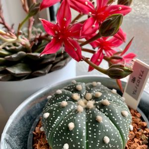 手前:アストロフィツム 兜丸 奥:タキタスベルス キングスター 窓際の可愛いおふたり😊🍀