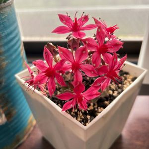 立派なお花が咲きました❣️ (本体は地味だけど😅) Tacitus bellus,'King Star' 今は Graptopetalum bellum,'King Star' ベンケイソウ科の中でも一番の美花 といわれてます🤭 お花の大きさは約4cm 虫や夏の暑さに弱いので これからの季節は要注意⚠️