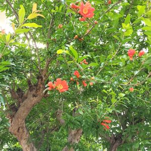 「今日のお花」 ザクロ ザクロの花の オレンジ色というか だいだい色というか… 他に無いような 独特の色をしてるな…と いつも思うのです 花殻はタコさんウインナーみたいだし その実の色の何と美しいことか… しかも 健康と美容に良い スーパーフード✨ 最高ですね♪ 流通されないのが 残念…😌