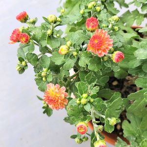 うれしい変化の ベランダの植物たち♪ 先日投稿した ガーデンマム•ジジ 少し小ぶりで咲いてきました🧡 お正月に飾った千両💚 元気だなぁ〜と思っていたら 発根していて GW頃 鉢上げしてみた 少し葉が傷んでるけど 落とさずに 元気に育って欲しい