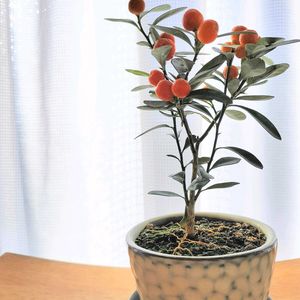 お正月に飾った「金豆」🟡 ちょうど1ヶ月 色付きました♪ 水やりの際 ポロっと落果… 試しに中を見てみたら 果肉はなく ほとんどが種。 青臭さのなかに ほのかに柑橘の香り∘˚˳°。