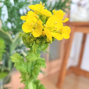 「今日のお花」 ナノハナ 花束の中に入っていた 小さな菜の花 何だろう… 凄い存在感 この1輪で部屋の中が パァーと明るくなる 白っぽい茎に 明るい黄緑色の葉 目が覚めるような黄色い花びら 「The 春」…って感じ 「菜」の花と言うことで もう1枚 何の野菜かわからないけれど 花が咲いてました 茎の深い赤が印象的…。