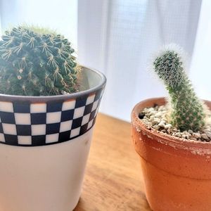 「今日のお花」 サボテン 何の変化もなくて いつも棚の上にあって… 私のなかでは 『置き物化』…していたサボテン🌵…… 久しぶりに写真を撮っていたら 錦丸(→右) トゲが綺麗だと思っていたけど 緑も生き生きしてた🌵✨🌵 へんてこな形 どんな風に育っていくのかな… …面白そう🤭