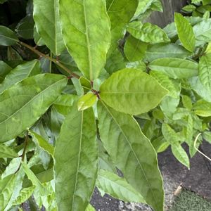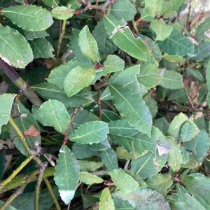 💚🤍ゲッケイジュ🤍💚 干してある葉は見たことあったけど、生垣になってる月桂樹は初めて見ました。青葉が鮮やか❇️ 今日の夕食は、乾燥ローリエを入れてロールキャベツを作りまーす♪♬ ユカリさんの🏷️目に青葉〜2025 に参加します。4種目、月桂樹で。 よろしくお願いします♪♬