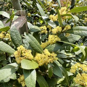 今日のお花 ֒*֒˖🟡🌲ゲッケイジュ🌲🟡֒˖* 月桂樹 別名 ローレル ローリエ ベイリーブス 月桂葉 クスノキ科 ゲッケイジュ属 お花の色が 薄黄色〜黄色に…✨