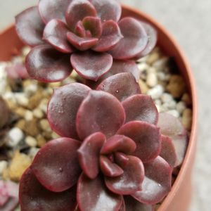 今日は寒いですね〰️😖💦 そして風もキツイ〰️😣💦 雪も降ってきた〰️❄️😱 天気予報で覚悟はしてたけど…😭 さっき軒下に避難してた センペルの鉢見たら 雪がのってるやん〰️😭 ✨エケベリア属 メラコ✨ きのう撮ったもの~📷👀 つやつや…ほんのり赤くなってる💖 軒下で暑さ寒さに耐えた偉い子です💕😊 葉ざしからやっとここまでに なりました🎵😂 最近キャンドゥでも見かけて びっくり‼️🌵😚
