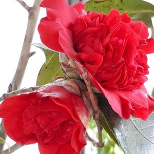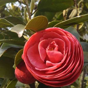 今日2枚目はゴージャスで美しい 唐子咲き椿🌿🌺🌿 南蛮紅かな❓🤗❓ 先日のつばきの森で🏞 🏷真っ赤な火曜日 🏷青空とコラボシリーズ
