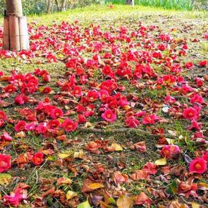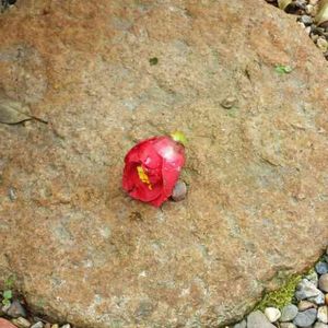 Camellia Flower on Grass 🌺🌱💫 竹林の小道を抜けると、ヤブツバキの花が敷きつめられた広場に出る。🌺🌺🌱🌱⛰️⛰️ 誰も通らないから、花が踏みつけられることもない。落下したままを保って土に還って行く。幸せな花だ❗🌺🌺😴😴😌😌 私も踏まない。そのまま綺麗な姿を保ったまま、一生を全うしなさい❗ヨロシコ❗ 👍👍🌺🌺🌿🌿😴😴😌😌👻👻