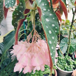 ベゴニア マクラータことやよいさん びゅ~んと背丈くらい伸びた先でたくさんのお花 ちょっと散り始めてるから慌てて撮影📸 伸び過ぎて、カーテンによりかからせてたら花がぶつかり毎日開けしめではらはら雪のように散ります 涼しくなったら切ろう😅