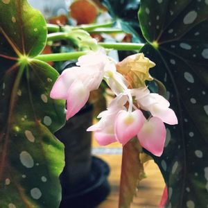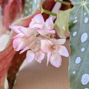 我が家へ迎えてから半年のベゴニア マクラータ 花が咲きました。花がつくと思ってなかったのでビックリ!ハートっぽくて可愛いです
