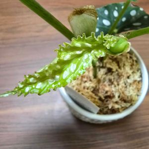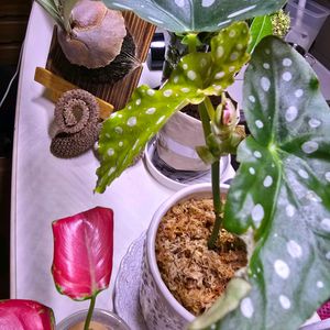 2025.6.26 個性爆発ベゴニアトリオ 去年消滅しかけたマクラータも何とかここまで復活 ホワイトアイスがいちばん生命力強くてカットしてあちこちに水差し増殖中 ダークマンボがいい感じに黒くてフリフリに仕上がりました そろそろ少し涼しい部屋に移さないとまた消滅しそう