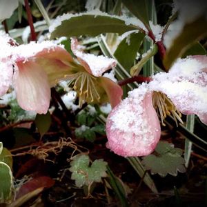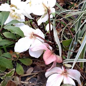 ヘレボルス ニゲルクリスマスローズ 🤍から、ピンク色💗に 今年は、特に色が濃くなって きてきます。beautiful〜 加工写真です。(2枚の写真が 重なっています。2重加工)