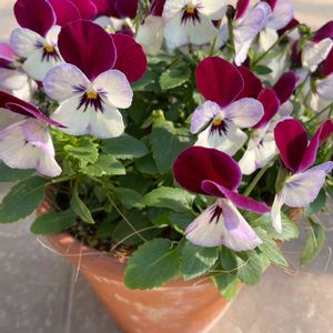 見元園芸 ビオラ歌姫 太陽の光をあびてキラキラの歌姫さん 鉢も窮屈そうになってきました