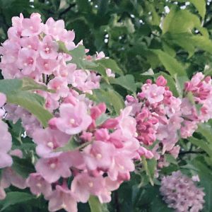 オオベニウツギ ポンポンとピンクの可愛らしい小花のついた枝が、何本か垂れ下がり、傘状⛱️にゆらゆら?🤔ビョンビョン?かなぁー?今年は見ごたえありました♡