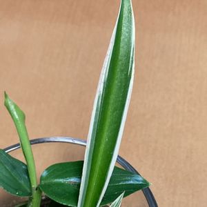 オリヅルラン 水挿し中 後方にある植物は?? 名前忘れてしまいました! オリヅルランの模様👀⁉︎ 縁が白! 縁が緑のもありますね!