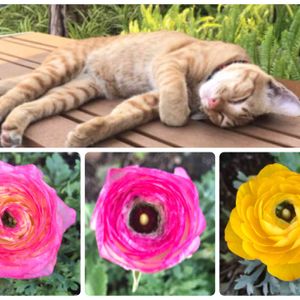 *・ヾ(Ő∀Ő๑)ォハョォ✫゚* ハマっています💖 我が家のラナンキュラス 地植え三姉妹😆 もっとたくさん咲きますように❣️ 野良猫は🇹🇭息子のインスタより あれ?野良ちゃんだと思ったけど よく見たら、首輪してました😆