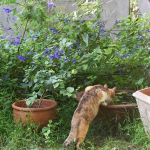 アブラムシの除去ように皿に入れた牛乳を一心不乱に舐める野良猫。 いつもこの辺ふらついてるし、たまには餌付けもいいよね?笑笑