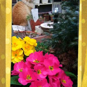 寒い~(@_@)北風が冷たいです💦 今日は仕事帰りに隣のお花屋さんでジュリアンをお迎え✨ いつもは選ばない組み合わせで黄色とピンク💛❤ ちょっとだけでも気分だけでも… 華やかに暖かく(*´ω`*)💞 野良猫ちゃんミニケルがまた遊びにきてます😺 いい感じにモデル座り👍 たてがみが立派なんですよ✨ その後ろの多肉棚は今はセダムプランターだけなので寂しいお庭です(^^;)