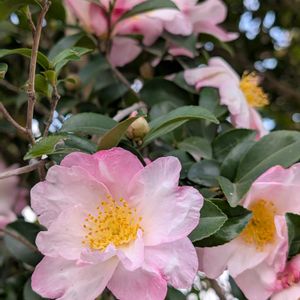 おはようございます。 サザンカ❣️ 優しい色合いで素敵です。 可愛いくてパシャリ〜