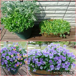 ナメクジにやられた、 サフィニアパープルミニ&レースラベンダーの ミックス植えが復活してくれました。 少し気合いが入りすぎて液肥多めだったのか葉っぱが黄緑色に‼ まずは復活を喜びましょう💜💜💜。