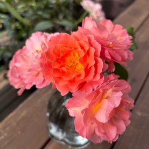 アリュマージュの2番花🌹です。 あまりに暑いし、花もちも良くないので、傷む前に早々に摘んで、家の中で楽しみます😊
