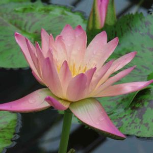 熱帯スイレン品種🌸夜咲種🌠 💗ミセスジョージCヒッチコック🌸💗古い品種の一つで淡いピンク色の幻想的な花色を持っています。細長い花びらを大きく広げて咲きます。