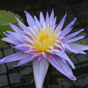 熱帯スイレン品種🌸夜咲き種🌠 🤍トゥルーディースローカム🤍 ペリーDスローカム氏の初期の頃の交配種で現在でも人気が高く広く楽しまれています!元になったジュノーに比べて花びらは太めで大分異なる花となります。 葉がグリーンで鮮やかな色合いをしています。