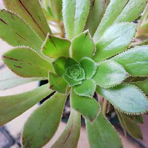 サンバースト 百均の! 葉が傷だらけだわー( ´•̥̥̥ω•̥̥̥`) アエオニウム属