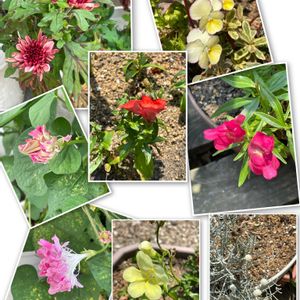 今日も、ガーデニングです🙋♀️ 多肉ちゃんの仕立て直し たくさんあります💦 花の植え替えもあるのになぁ😅 今日の写真📷は、ひっそり咲いてるコたち。 左上↖️・右下↘️は、ムクゲちゃん。 2つめ、3つめ 咲いてくれました。 つぼみがあと1つあります🤍 右上↗️・左下↙️ 金魚草ファルファレちゃん。 わずかですが、咲いてくれてます。 真ん中⬆️ オキザリス 紫の舞ちゃん。 紫の三角葉っぱの中 ピンクの花がたくさん咲いてます。 右➡️ マーガレット ストロベリーホイップちゃん。 これでもかというぐらいバッサリ剪定✂️したけど(6/3のpic)、葉っぱ だいぶ生えてきてます😳 花は、ぽつりぽつり 白っぽいのが多いですが咲いてくれてます。 左真ん中⬅️ カリブラコア ダブルピンクイエローちゃん。 マーガレットちゃんと同様にバッサリ切っちゃって、こちらはあまり元気ではないけども😅 (スーパーベル ダブルピンクリップルちゃんは枯れちゃいました🥺)