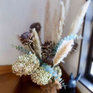 おはようございます♪ 日曜日に道の駅でアーティチョークのドライフラワーゲット👍 なんと1つ¥100言う安さ(*_*)ウソー マイガーデンで収穫した矮性のパンパスグラスとノリウツギと一緒に〜 パンパスは穂出ししたのできれいにドライになりました〜ヽ(´▽`)/💕