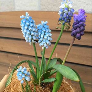 わが家のムスカリちゃん✨ 何色が咲くかはお楽しみの芽出し球根でしたが… ずっと欲しかった水色が咲いて嬉しい😊 優しい色がたまらないです🎵 可愛い💕 枯れてきちゃいましたが… 右から2番目の子✨ 上は水色で白になり下部は青。 美しいです💙 一番右側の紫ちゃんも、可愛いよ!💜 あんまり他の子を褒めると拗ねちゃいそうですね😁
