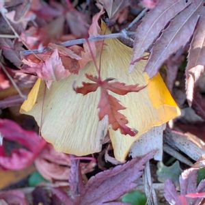 1️⃣ 前投稿で蝋梅の蕾を見て頂きましたが こちらは葉っぱありバージョンです 黄緑の葉と黄葉が混ざっていました 2️⃣ 傍らの柱には楽しい光の悪戯!🟡✨ 🏷️グリーンアクセサリー♪ 3️⃣4️⃣ イロハモミジの株元の緑が消えて 全てオレンジ色となり 全体の姿も寂しくなりました 5️⃣ デッキの小菊の葉っぱは寒くて 紫に変色して来ました アントシアニンの働きですね 🏷️8日は葉っぱの発表会…に お願い致します🎶