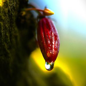 「カカオ」の果実のその後 小さな果実が少し成長 小さな花がまだ咲いています 京都府立植物園温室2025/12/7
