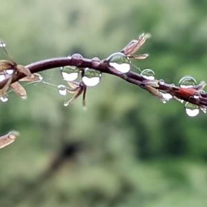 今朝は全てずぶ濡れ アケビの蔓の雨粒もキラキラ✨