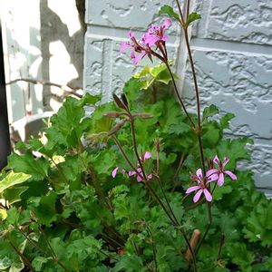 原種系ペラルゴニウム ラベンダーラス ①可憐なピンクのお花 ②のびのび育っています そろそろ切り戻して整えてやらなくては。ネ゙😅