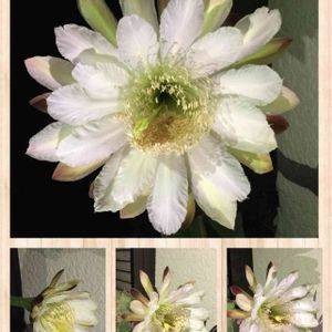 こんばんは😊✨ 今日も暑かった私地方です🥵💦 ♾♾ネックレスもお気に入りの鉢も無い📷🤣💦 めんごめんご〜〜〜( ´•ᴗ•ก)💦 昨夜🌵🌸咲いたのよ‼️ こんな大きなサボのお花自宅で見れるとは… もうびっくり‼️👀⚡️⚡️⚡️ 寝落ちしない様にキモカワメンバーに付き合ってもらって 8時過ぎぐらいから1時間間隔ぐらいで何度か 記念撮影📸💡🔦 ちなみに…イイ香りのお花🌸という訳ではなかった💦 けど…臭くもなかったよ🤣🤣🤣💦💦💦 普通に草の匂い🌵🌸クンクン( ̄∞ ̄) まだもう1つ🏺ついてるから 近いうちに咲くとイイな‼️🌵🌸👍 感動のあまり...ヽ( ´_つ`)ノ ? (ヾノ・∀・`)イヤイヤ眠くてキュピたち輩のset忘れ… 私としたことがꉂ🤣𐤔ꉂ🤣𐤔ꉂ🤣𐤔 暗闇の中💦📸必死になり過ぎた🤣🤣🤣💦 無事開花からの楽しい投稿…乞うご期待‼️🤣💦