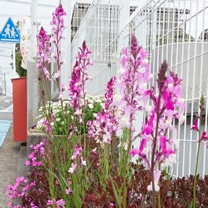 地元のバス停にて🚏🚌 季節の花が植えられていて、いつも綺麗です✨ ところで、この背の高いお花はなんというのでしょう? 教えて下さい!