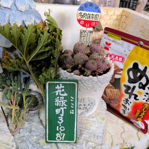 るるさんから昨日 かまぼこ板で繋がる輪 ㊗️3000pic越えプレゼント🎁 が届きました♪ ムラサキゴテン ハクホウボク ミニサボ エケ モルタルハウスピック たにくプレート るるさんグッズが増えて嬉しいです♪(๑ᴖ◡ᴖ๑)♪ ② お店で目があっちゃってお迎えしました♪♪ 岐阜の高校の生徒たちが育てたビオラです💙 ③ お店のインスタをフォローしたらスプレーカーネションが一輪いただけました。 ラッキーでしたね✌️ 🏷️ 美しく青きドヨウ 付けます