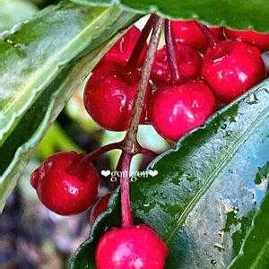 🍃🔴我が家の赤い実キャンディーズ🔴🍃 2枚目はチェリー🍒のように、 艶々の可愛い🔴🔴実がデュエット🥰💞