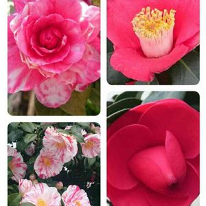 桜と椿のコラボレーション 始まりました🌸🌸 🌼🌼 真っ赤とマーブルの大きい椿のコラボも素敵です