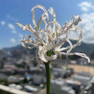 こんにちは☀️ネリネが咲いてます🌸 早く咲いて😳それに色もピンク色のはずが真っ白🤍🤍この子も美しいですがピンク色に染まったお花も見たかったですね😂 来年に期待したいです💗💗